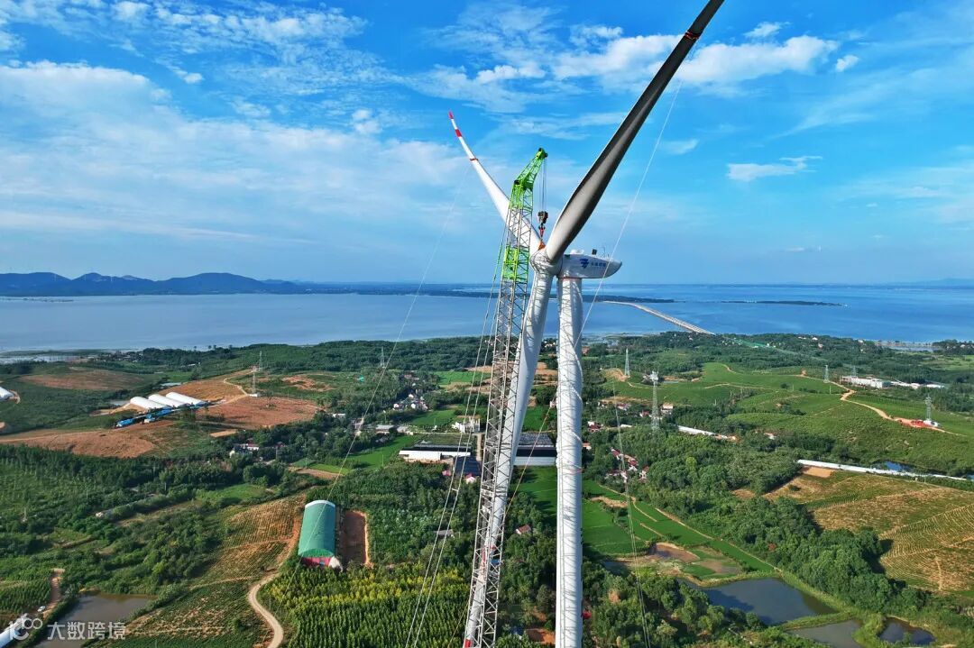 叶轮由三个叶片和轮毂拼装而成。8月12日早晨6点,施工方开始叶片和轮毂的组装工作。13日上午,三个叶片分别和轮毂初步对接成功。到当晚21点左右,防雷碳刷等配备部件也陆续安装完成。