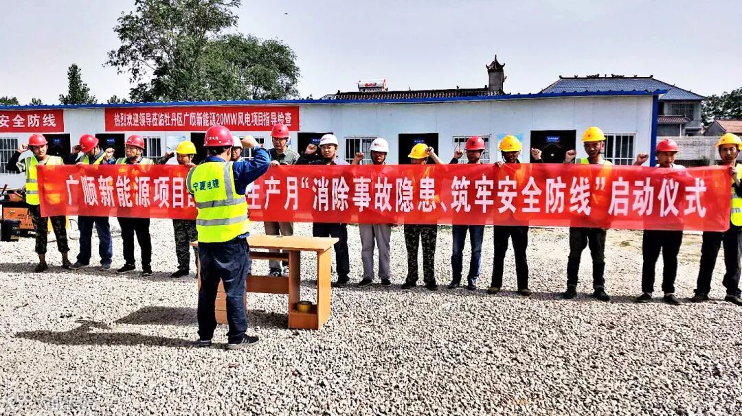 按时召开周安全例会,听取项目安全监管工作和下一步安全管理计划;公司片区负责人经常深入现场实地检查、办公,亲自监督项目部的安全工作;安全总监亲临现场督查工作、布置安全措施,指出问题。时临夏季高温、雷雨交加,且风场范围大,作业面多而散,项目部坚持以“人人都是安全员”,使安全监管能兼顾每个作业。通过项目管理微信群,对各种安全问题及时上报,起到了良好的管控效果。自开工建设以来,要求施工单位进行各班组站班会,宣贯安全知识,进行多次的安全活动,如“安全有奖问答”、“安全月宣传启动签字”、“心肺复苏培训演练”等,加大宣传教育、排查治理安全隐患,安全责任已牢牢记在每一位施工人员和管理人员的心中。