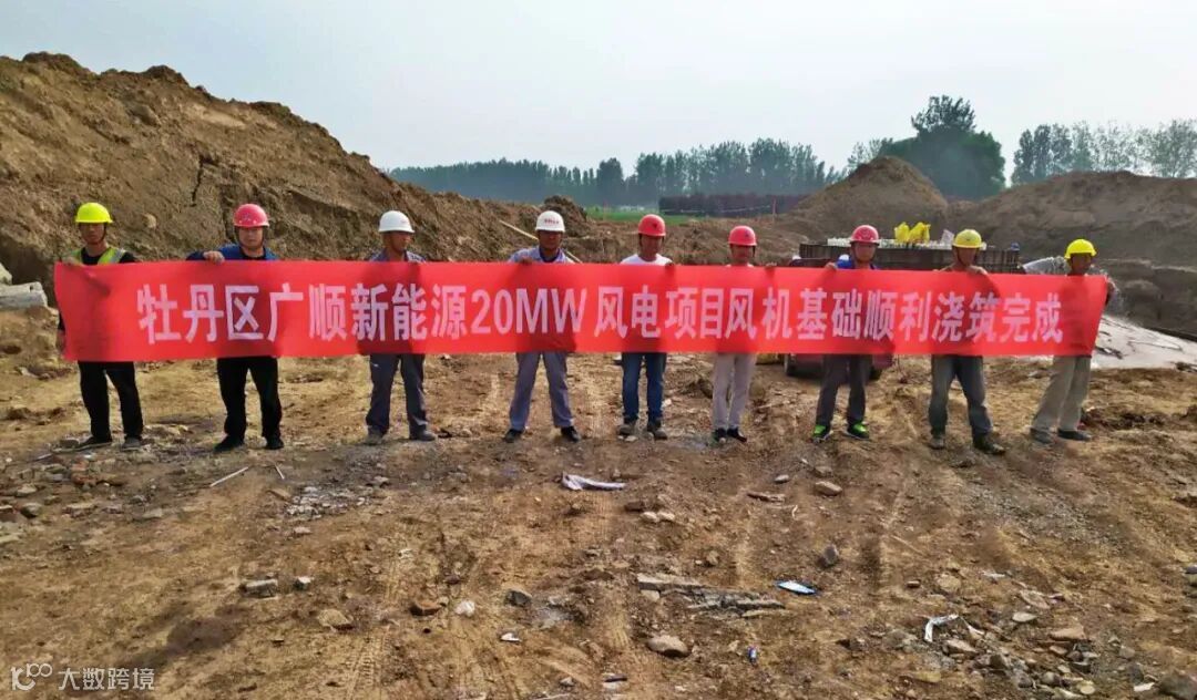 2020年6月29日7时25分,天顺风能集团李村三期20MW风电项目5#风机基础最后一罐混凝土浇筑完成,这标志着本项目7台风机基础浇筑工作圆满落幕。