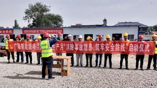风电施工技术要求高,现场施工难度大,整个施工周期安全风险点管理要求高,项目部依托“安全生产月”活动,组织施工方、监理方大力开展安全检查、排查安全隐患,主题签名、物资发放、应急预案演练等活动,确保安全生产零事故。