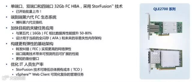 作为32Gb /s FC存储HBA卡较之上一代产品可将IOPS提升80%,其260万IOPS的性能和24000MB的吞吐量,让它更能够适应闪存技术的应用环境。其StorFusion技术可提供转发纠错(FEC)功能,可自动纠正传输错误,有效提升了网络的弹性能力。其独有的端口隔离技术,可在不利条件下提供可靠性保障。因此,对于FC存储用户来说,新的技术肯定带来更高的性能保障。