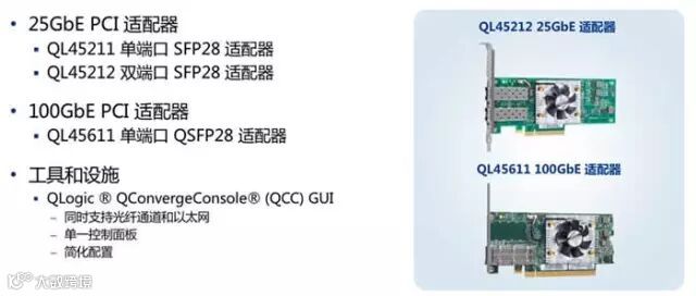 QLogic在发布32Gb /s 2700系列FC存储HBA卡 的同时,也发布了FastLinQ 45000系列以太网卡,仅需一个高性能ASIC,45000即可支持10Gb、25Gb、40Gb、50Gb和100Gb以太网络连接。