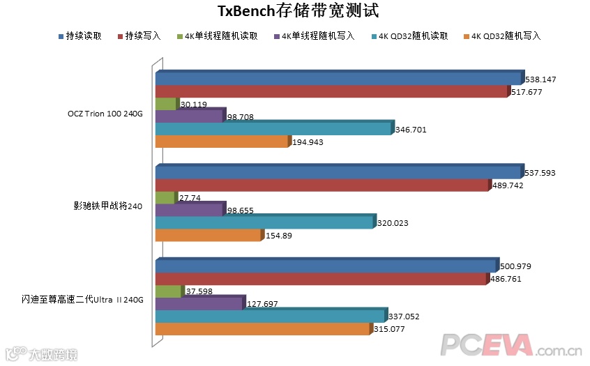 电脑知识网站PCEVA选取了市场上具有代表性的三款TLC SSD新品进行横评:OCZ Trion 100 240G、影驰铁甲战将240G和闪迪至尊高速二代Ultra II 240G,其中Marvell-Inside的闪迪Ultra II性能表现尤佳,领跑同行,引起了业界的关注,下面为你揭晓结果(以下多图,请点击图片查看大图)~
