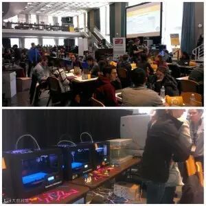 在所有参赛者都到场后,每家竞赛赞助商都有几分钟时间做演讲。Marvell公司负责Kinoma的副总裁Peter Hoddie介绍了Kinoma Create和KinomaJS——针对Kinoma Create的JavaScript应用框架。Peter还分享了来自其他创客项目以及我们以往参与的黑客马拉松活动的照片,包括ACM UIST学生创新竞赛、针对汽车和家庭领域的AT&T黑客马拉松、IoT世界黑客马拉松和东京Maker Faire。我们非常享受与学生开发者和创客一起工作的过程。