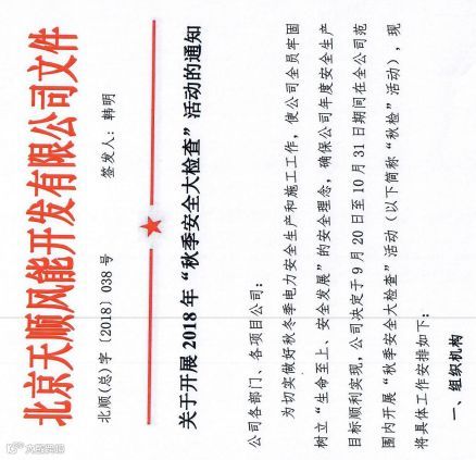 为进一步提升公司全员安全意识,牢固树立“生命至上、安全发展”的安全理念,促使公司年度安全生产目标顺利实现,北京公司于2018年9月20日至10月31日期间在全公司范围内开展了“秋季安全大检查”活动。