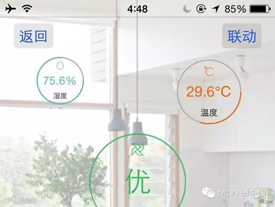 例如,除了检测感应各种环境指标(如有害气体、温湿度、光照等),这种智能空气检测设备还可以在感知家庭中的各种环境指标后联动其他智能产品来自动优化和改善你的家居环境,如自动开启连接加湿器的智能插座,或发送指令给智能控制设备开启空调等。