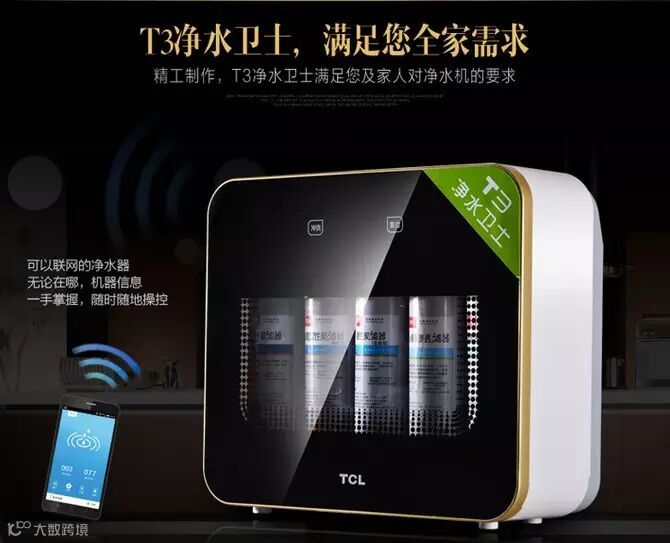 T3净水卫士内置BroadLink自主研发的Wi-Fi智能模块,全球首创,用户用智能手机即可通过互联网对家里净水器的TDS值实现实时监控,及时了解自来水质是否恶化以及饮用水是否达到健康饮水标准,同时实时掌握滤芯使用状况,也可以获得TCL净水服务人员的主动更换提醒,解决了健康产品长期难以解决的维护问题,为用户随时随地健康饮水保驾护航不再是梦想。