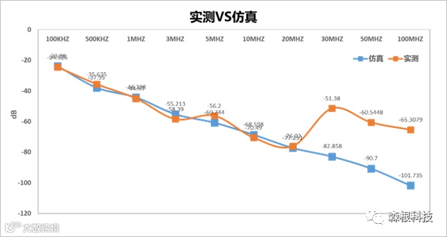 总结,仿真结果和实际测试结果在20MHz以内具有较好的拟合度,具有较好参考性,但在频率20MHz以上,差异较大,不排除高频条件下,电容的寄生参数发生变化,需要进一步进行修正;