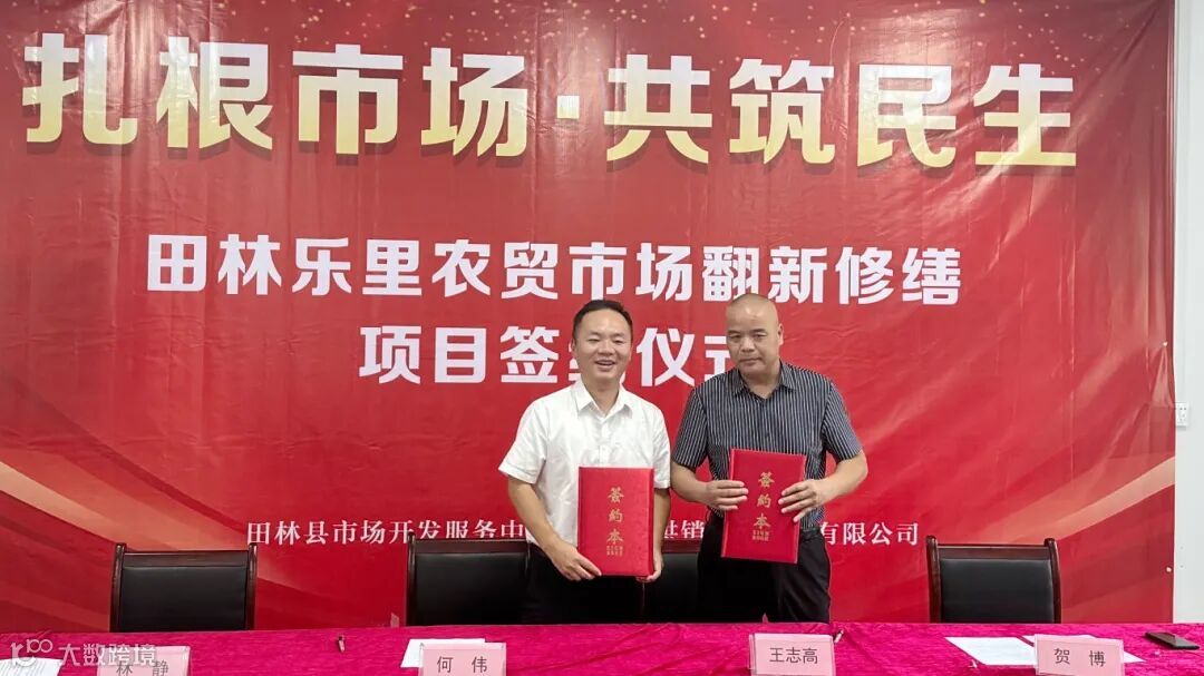 仪式上,何伟代表广西供销农贸市场公司、王志高代表田林县市场开发服务中心签订了项目合同协议。此次签约标志着田林乐里农贸市场翻新修缮项目正式进入实施阶段。未来,双方将以此次签约为起点,进一步深化合作,凝聚政企合力,推动双方合作早日结出硕果。
