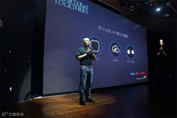 BroadLink CEO刘宗孺上台致辞,大会正式开始。演讲中它谈到,从手机到电视,智能化的大潮已经一波胜似一波,且速度在不断加快。对于家电产业,智能化已经成为下一轮发展的突破口,在已成型的思维模式下如何实现迅速转型,占领市场先机,成为当务之急。