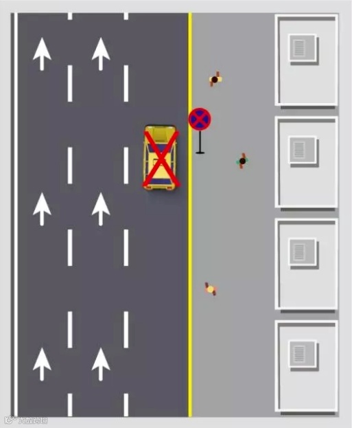 单黄实线施划在道路中间是禁止车辆跨越,而被施划在道路一侧边缘上时,其身份便转变为禁止停车标线。