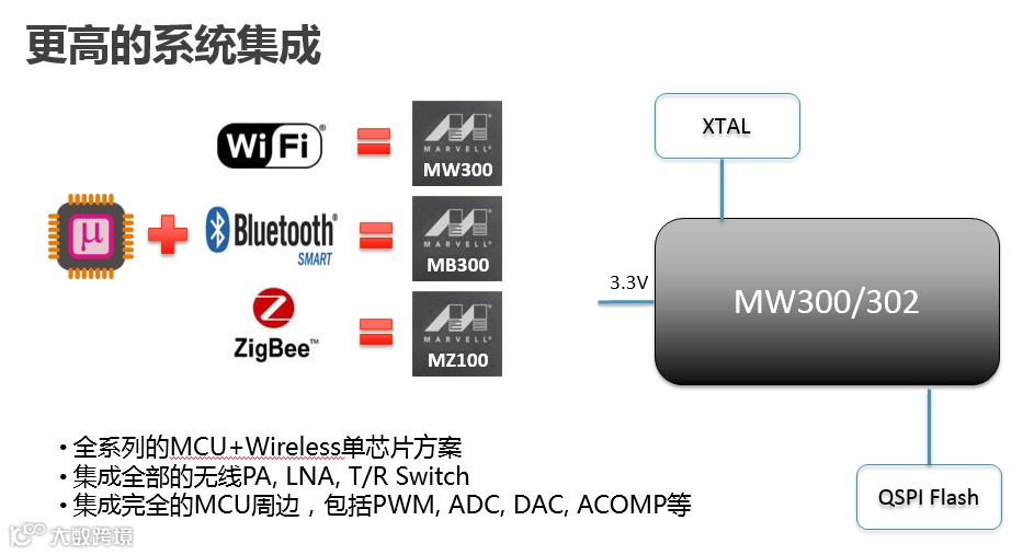 在Marvell的方案中,其实我们在上一代产品上就已经把WiFi的协议控制、驱动层面,直接放在WiFi上面一个单独的小CPU来控制,所以我们的MCU体积上相对是比较小的。因此我们上一代产品上就已经提供了非常好的memory支撑,比其它产品相比有更好地优化。