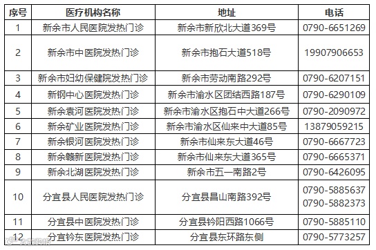 发热门诊信息公告如下