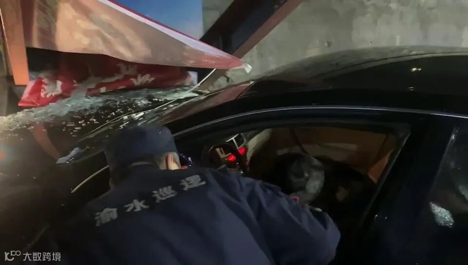 12月4日22时许,一辆黑色轿车由仙来中大道往长青北路左转行驶时,突然失控撞上路旁的墙壁。正在岗亭执勤的渝水公安特巡警大队巡逻队员发现这一情况后,立刻冲向事发现场。巡逻队员们查看了昏迷司机的身体情况,并立即拨打了110和120电话。为了防止二次事故发生,队员们把司机转移至巡逻岗亭等待医务人员到场救治。