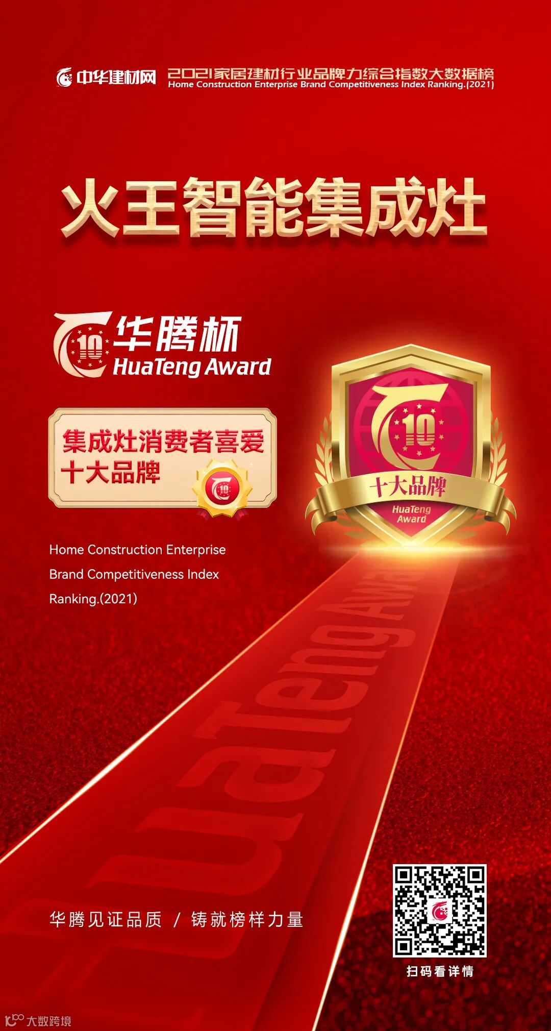 在此之前,火王已经将“中国集成灶行业十大品牌”、“中国厨电行业十大品牌”、“中国燃气灶行业十大品牌”等荣誉收入囊中,此次一举摘得“2021集成灶消费者喜爱十大品牌”荣誉可谓锦上添花。