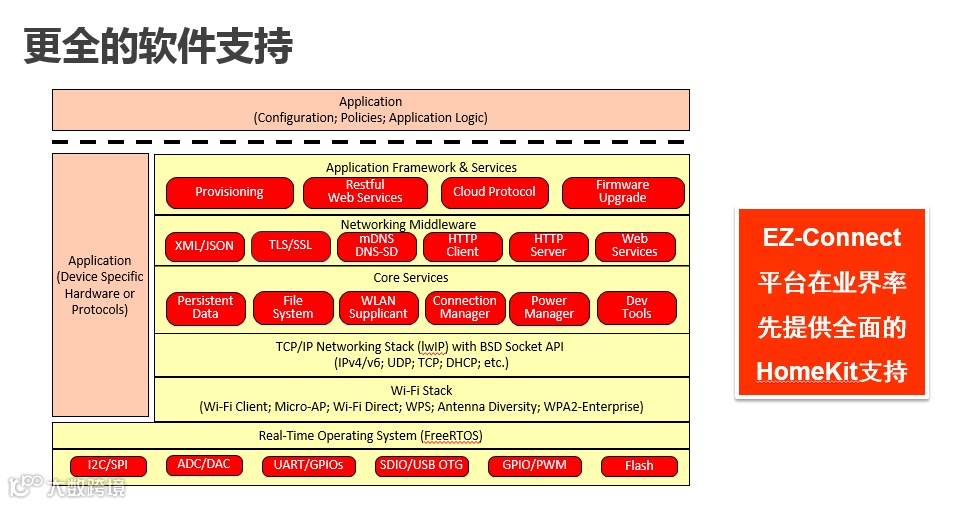 以上所谈到的都是在硬件方面Marvell的巨大优势。其实Marvell更多的解决方案优势还体现在软件层面上,我们从上到下提供了整个软件层面的大部分支持,而且是商用的版本,这在其它产品上已经被大量地采用。所以我们的客户只需要基于Marvell的软件平台快速开发,我们都提供开放的源代码给客户。而且就在前不久,Marvell成为业界首家在SDK中全面支持了HomeKit的芯片厂商,我们也是到目前为止,唯一一家得到苹果认证的可以全面支持Home Kit的方案商。