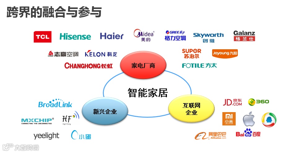 经历了2014热闹的发展元年,物联网尤其是智能家居产业如今正处于一个传统家电厂商跟互联网公司相互融合与碰撞的局面,这种竞争与互助给智能家居带来了全新的前景,毫无疑问这将加速智能家居领域的发展壮大。在这一格局之下,我们既能看到传统企业的坚持,也能看到互联网公司的进取,两者之前的碰撞、融合及演进为市场带来了非常多的机会、机遇。