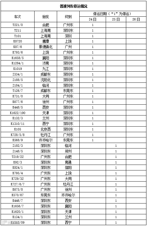 市民朋友务必及时了解列车开行情况,合理安排行程。