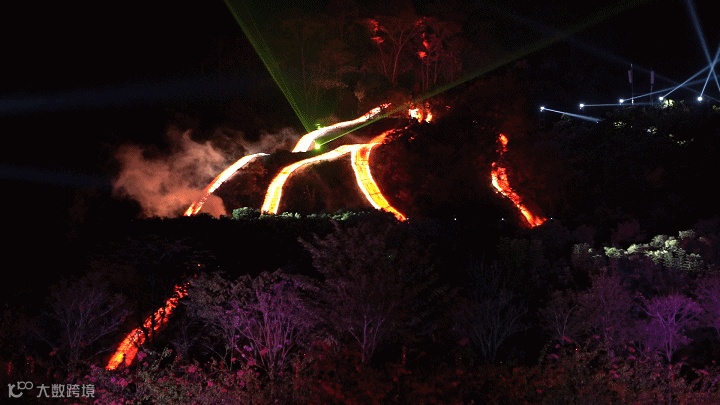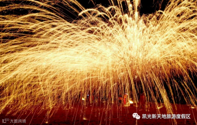 用高温的铁汁击打到棚上,形成十几米高的铁花