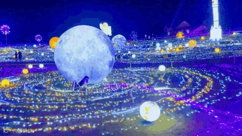 各种绚丽花朵绽放在“地面”,如同春日般景象