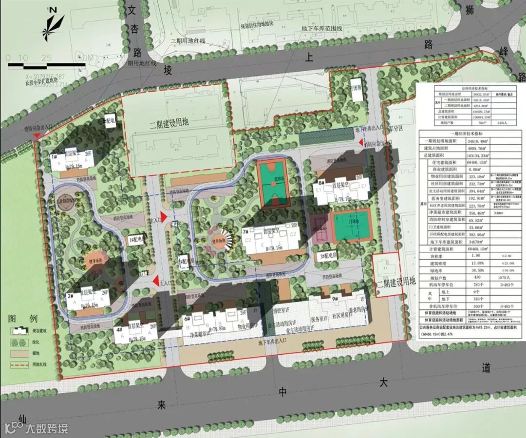 该项目是住建片区棚改项目一期,一期用地面积34618.49平方米,总建筑面积103243.27平方米。项目一期主要经济指标:容积率1.98,建筑密度14.19%,绿地率40.75%。一期规划户数450户,机动车停车泊位数733个。