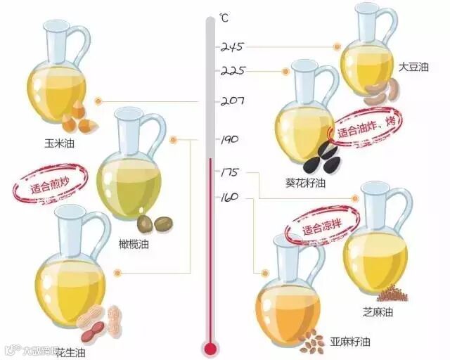 根据烹饪方式选择不同沸点的食用油,适合煎炒、油炸、凉拌的油都不一样。