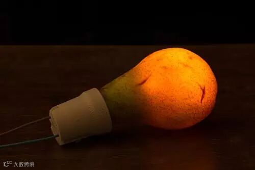 radu zaciu利用水果和蔬菜制作了这些光源,包括草莓、花菜、西瓜、菠萝、土豆和梨等,先切开外皮,用打钻机钻一个完美尺寸的对称通道,再把灯泡放入水果蔬菜的中心位置,让微弱或明亮的光线在里面自然发出。每个有机体的外皮就像灯罩一样,将它本身的颜色投射在内部光源上,使其呈现相应的颜色。