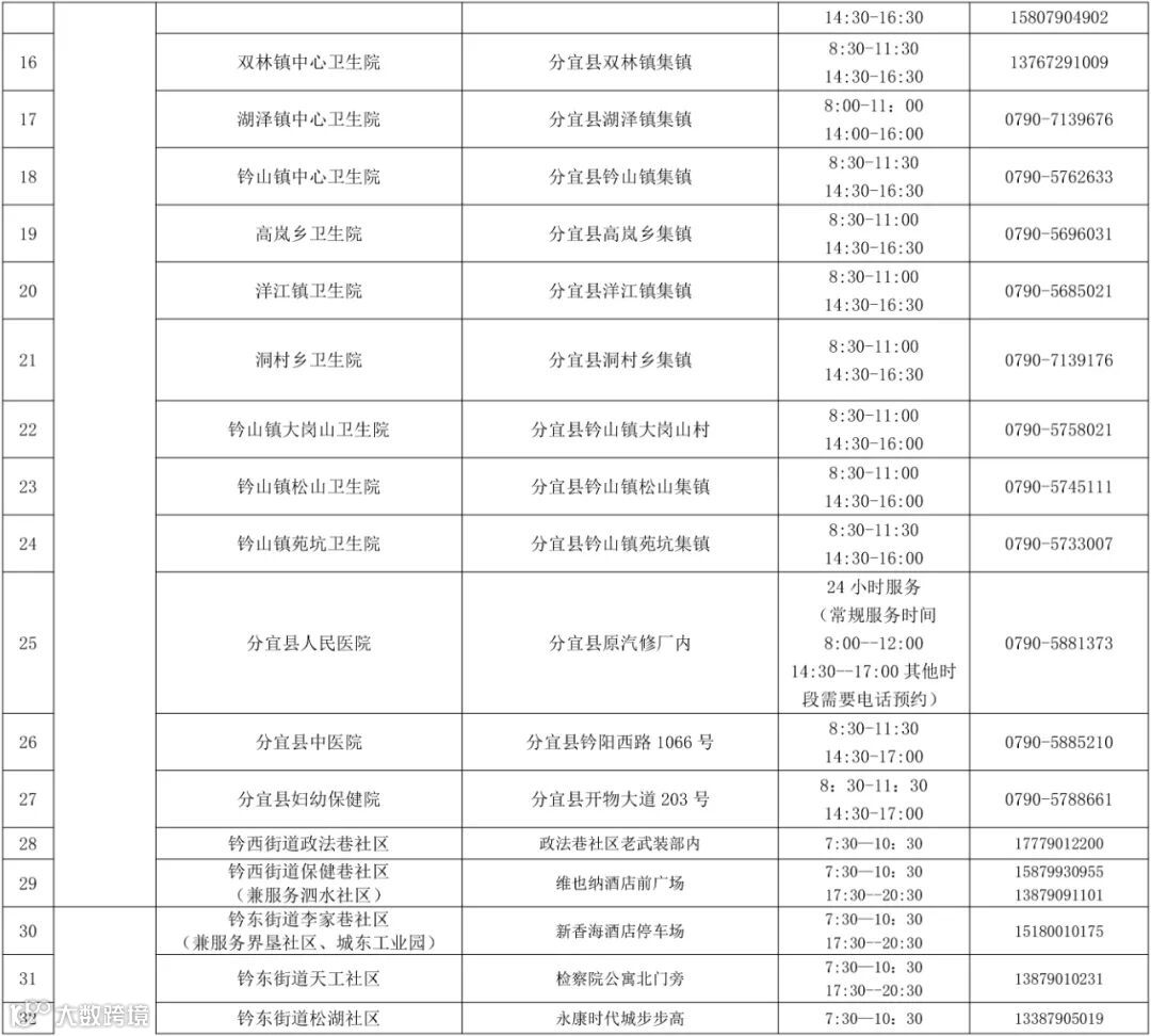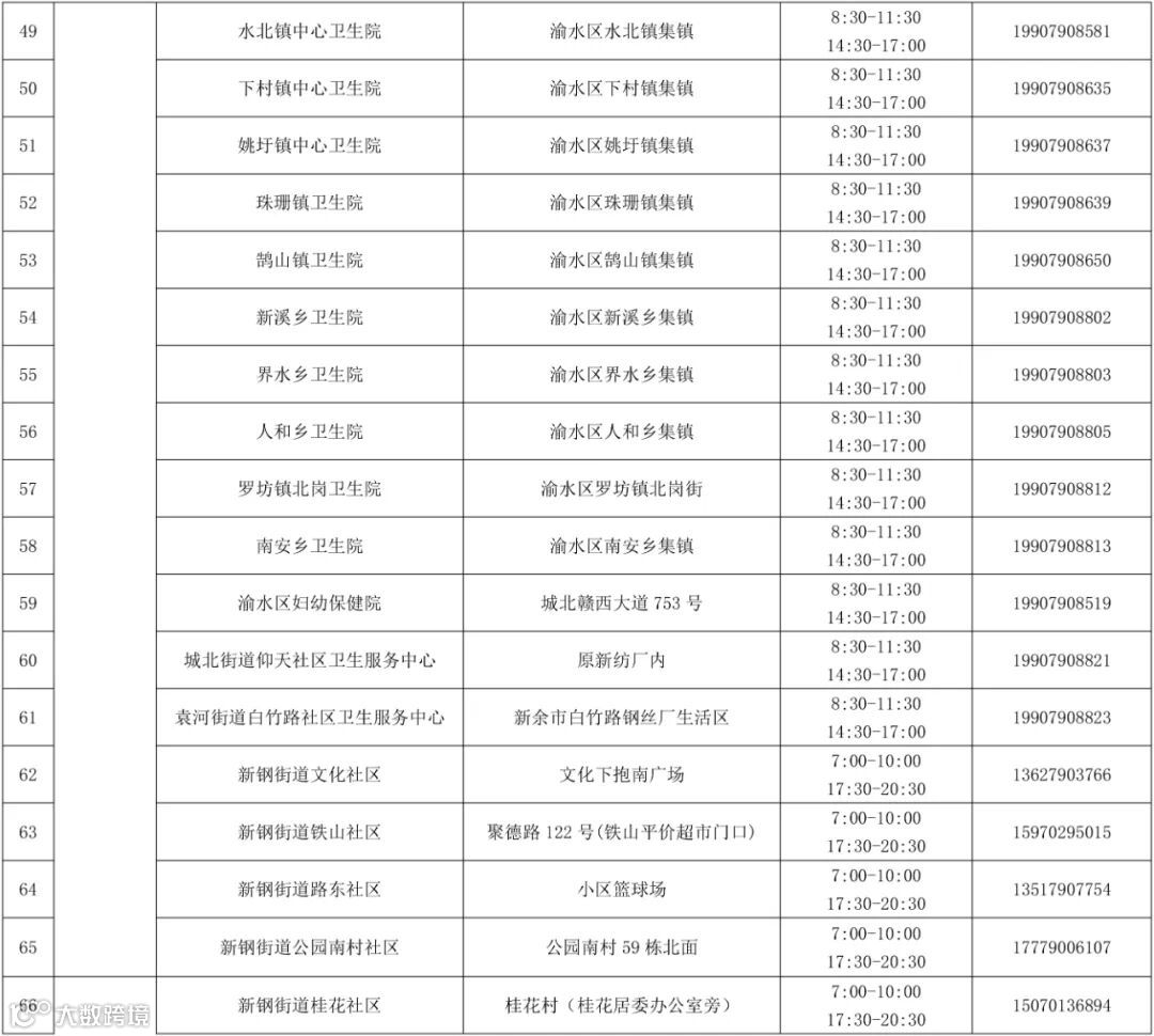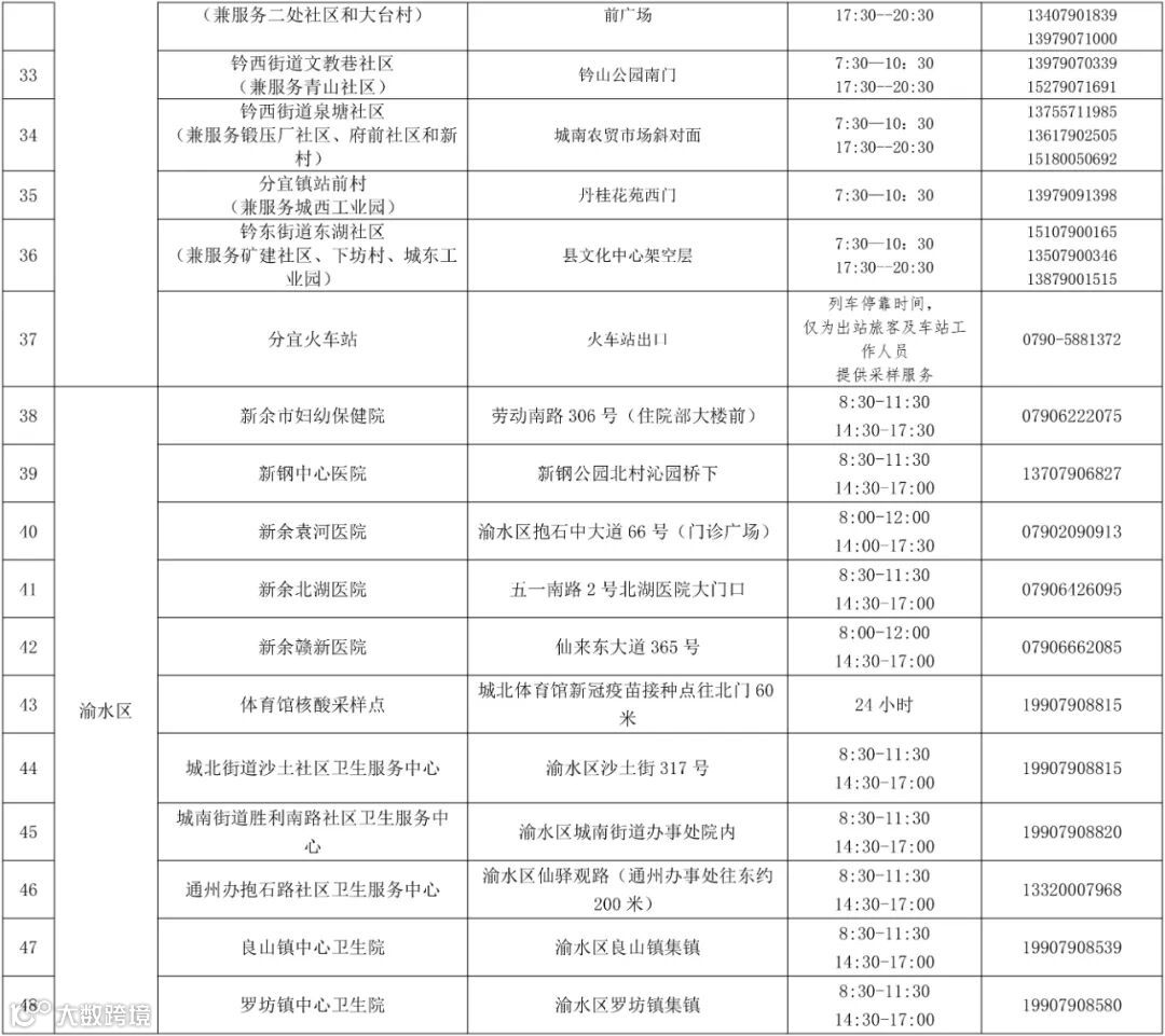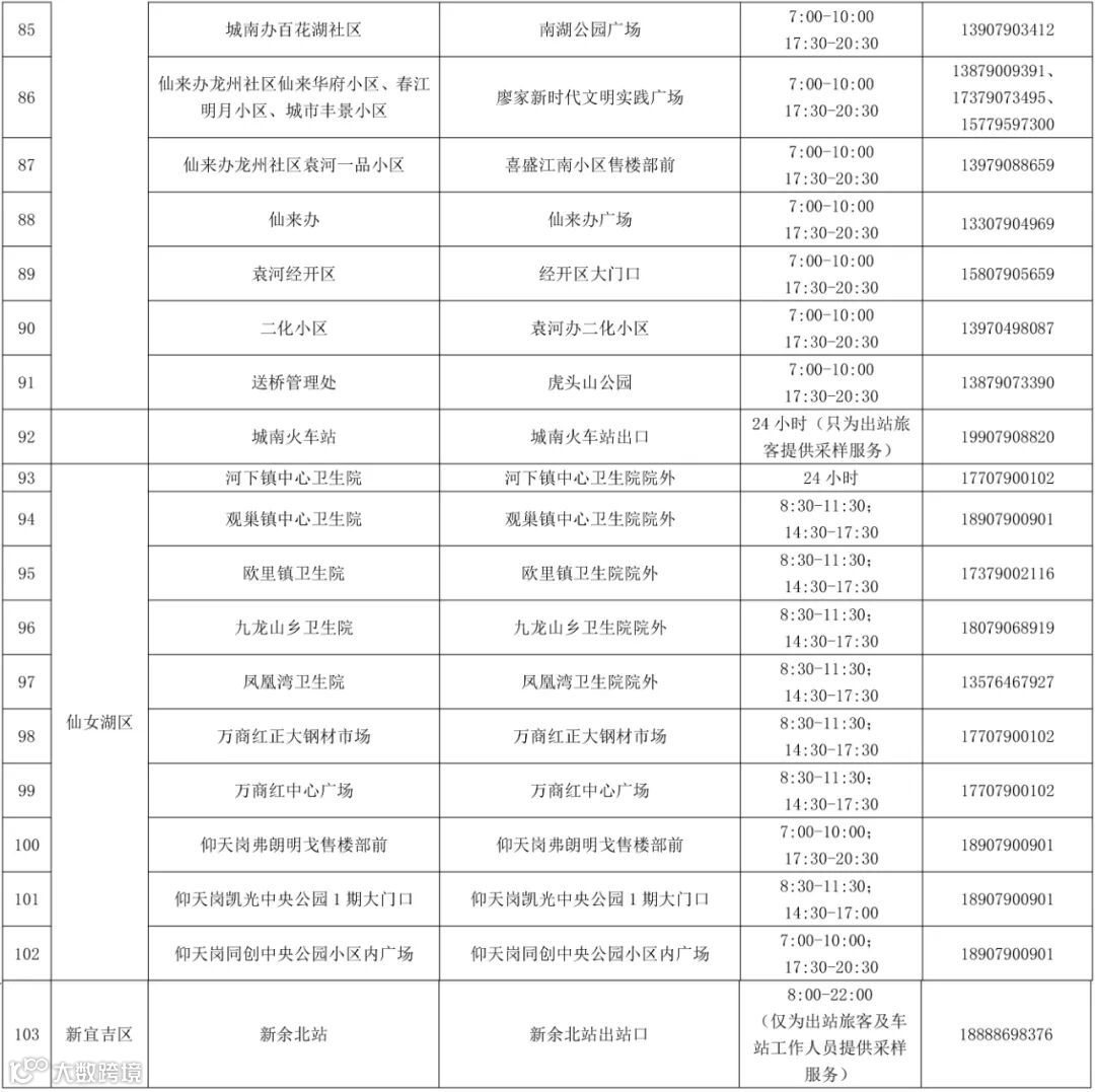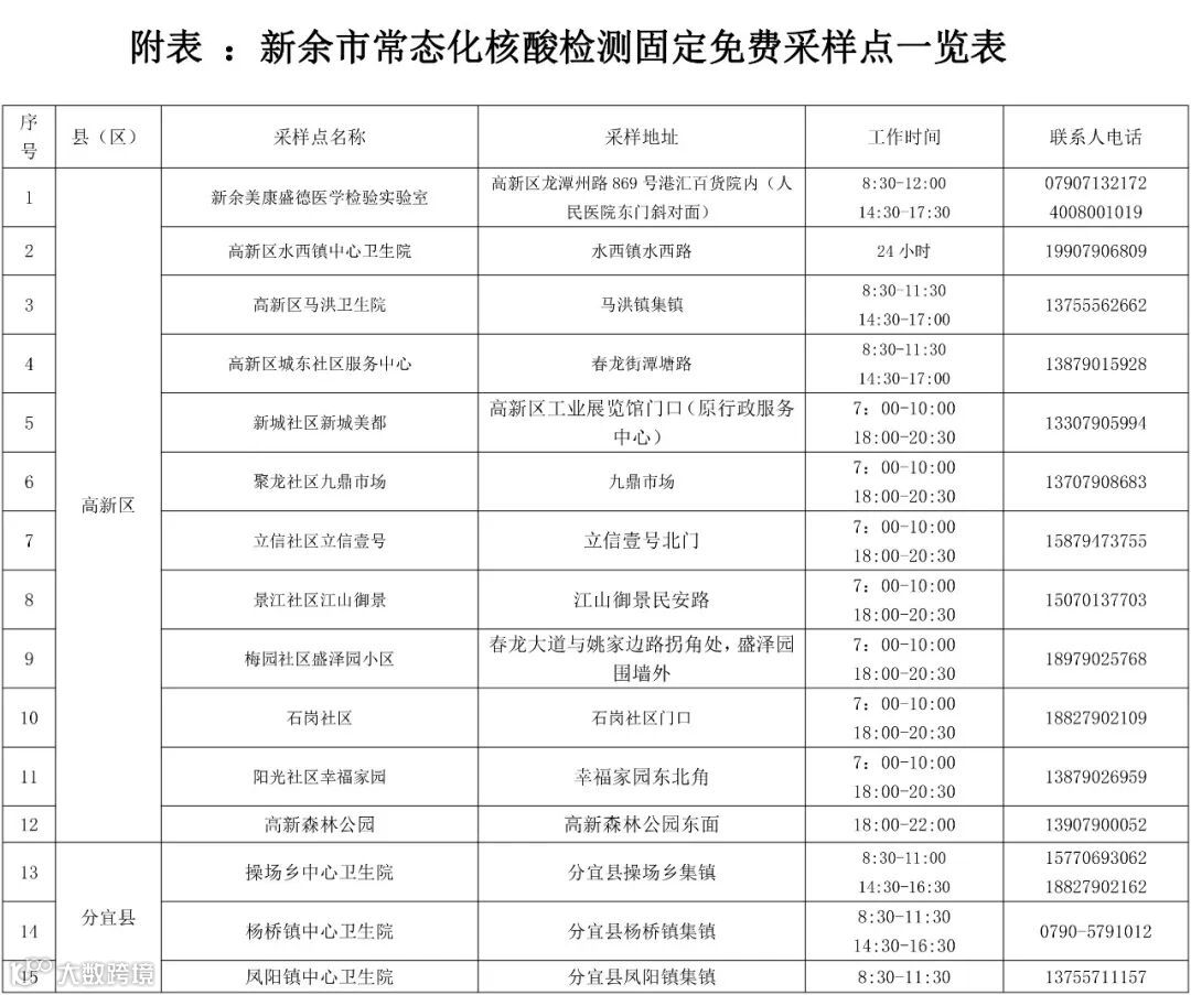 附表:新余市常态化核酸检测固定免费采样点一览表