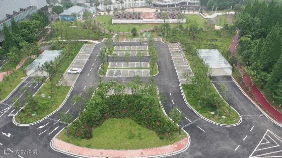 高地广场地上部分以生态园林环境建设为主体,在建设风格上突出“三融合”:融合自然生态。高品质打造内庭花街、听湖草坪,中心绿化区配以大面积高质量草地、模纹花坛、休闲步道,最大程度满足市民对健康、休闲、养生的需求;融合配套功能。突出完善配套功能主题,建设生态停车场、多功能会议室、园路及人行道等部分,既拓展了会展中心的承载空间,又回应了群众愈发强烈的游园“停车难”的无奈;融合城市文化。