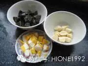 5.松花蛋、咸鸭蛋切丁,蒜瓣、姜末备好