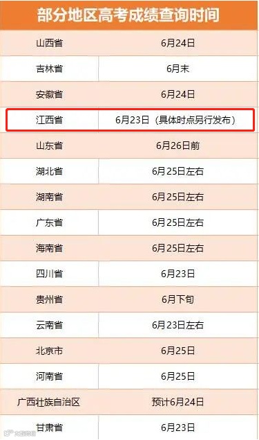 江西给出了查分的大致时间↓↓↓