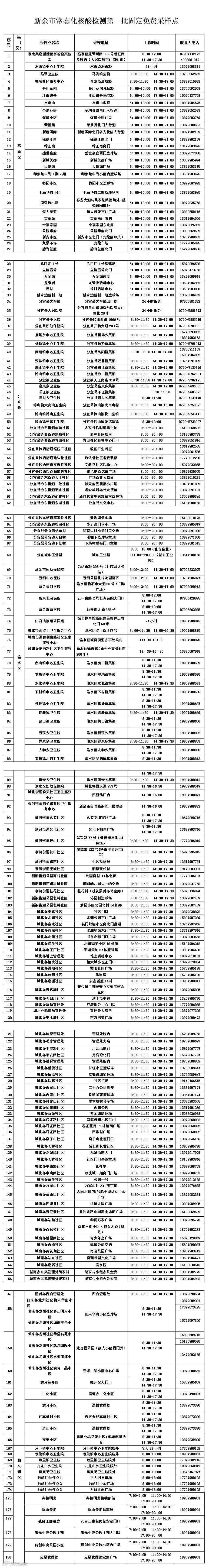 附表:新余市常态化核酸检测第一批固定免费采样点