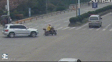 ▲电动自行车从后方受到碰撞,驾驶人向前扑倒,头部着地,但仍可以起身。