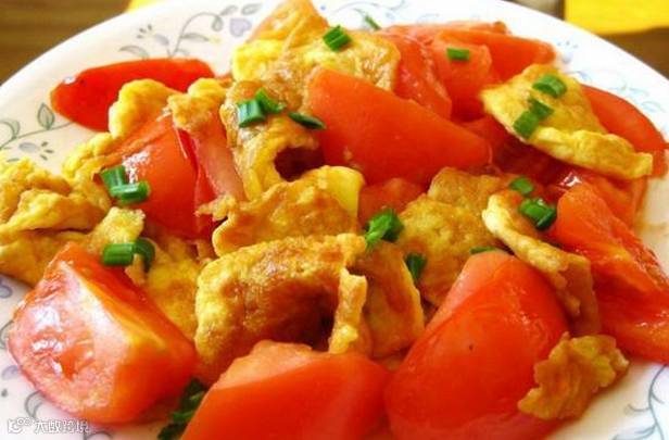 3、炒锅再入油、下入西红柿块翻炒,待炒出番茄红素时倒入鸡蛋合炒,加盐调味。