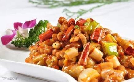 7、最后倒入黄飞红花生翻炒均匀即可。