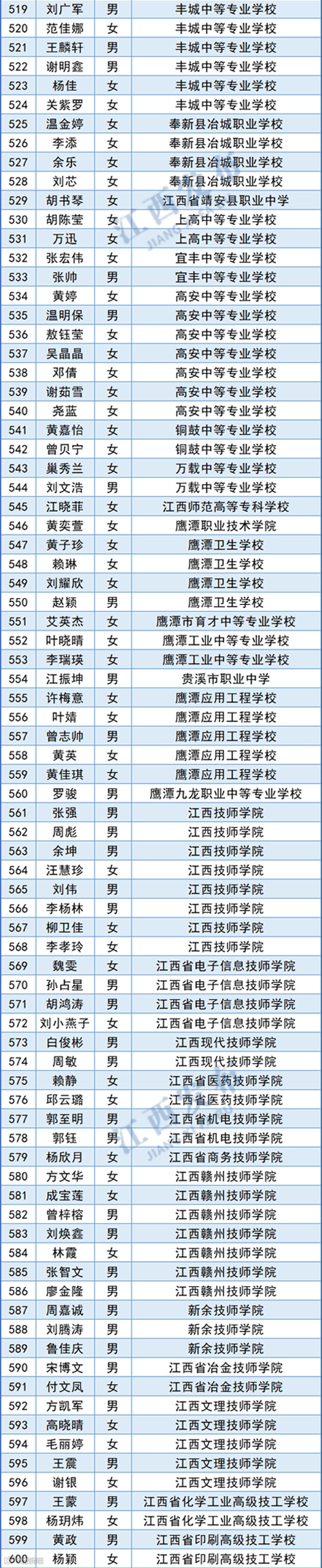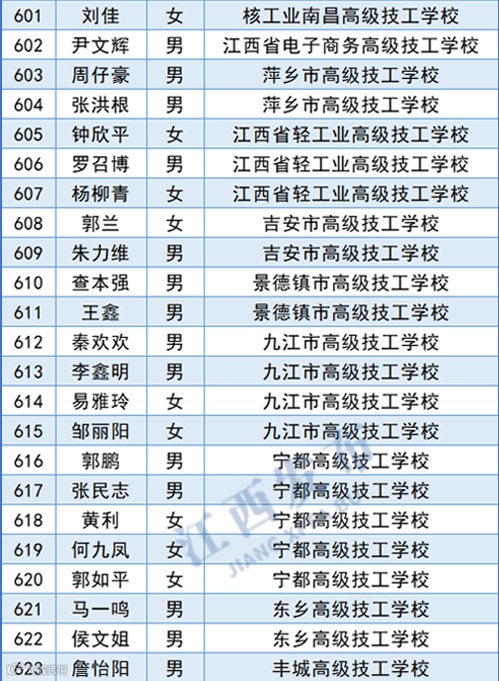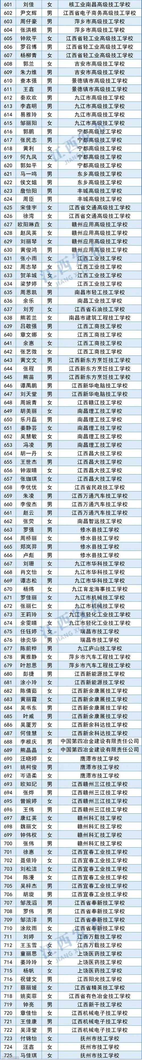 江西共有725名学生获得