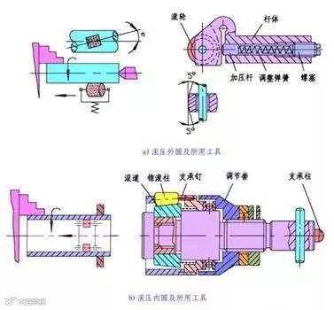 滚压是在常温下用硬质滚柱或滚轮施压于旋转的工件表面,并沿母线方向移动,使工件表面塑性变形、硬化,以获得准确、光洁和强化的表面或者特定花纹的表面处理工艺。