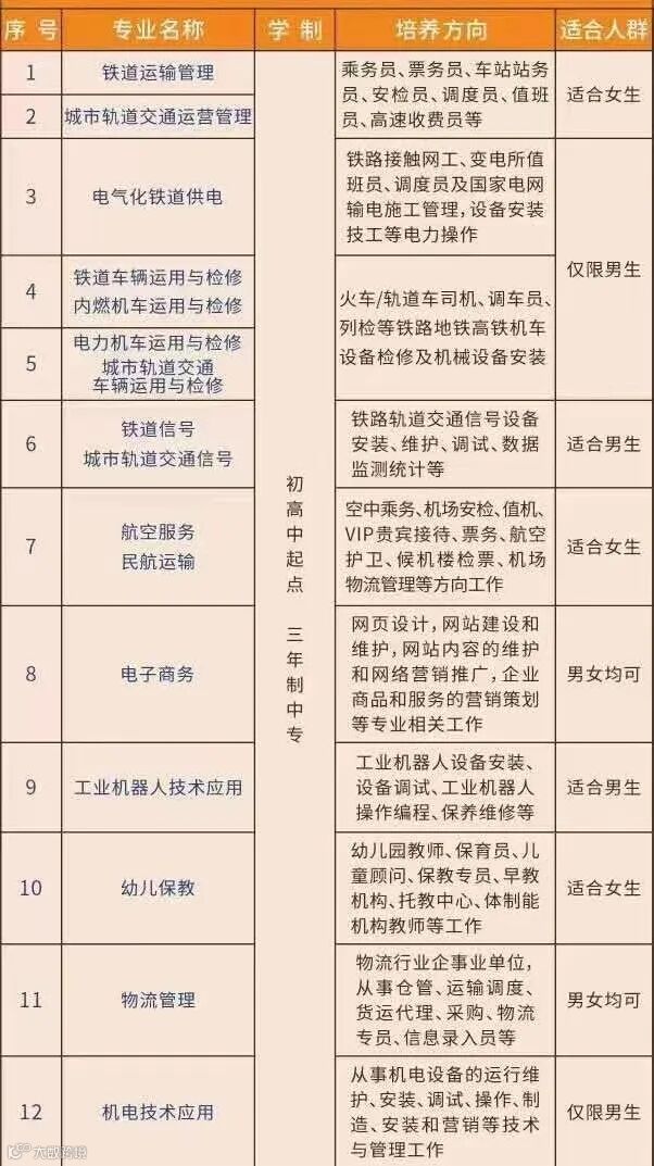 南昌向远轨道技术学校2022年秋季面向全国招生,培养铁路轨道交通行业火车/轨道车司机、乘务员、票务员、安检员、站务员、信号员、列检员、调车员,及铁道供电、航空服务、工业机器人、电子商务、机电技术应用、物流管理、学前教育等专业人才。