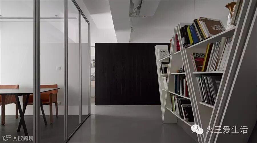 如果你不想把过道用来装饰而白白浪费,那就用来做收纳。通顶的书柜,成了整面的收纳墙,凹凸有致的柜体,创意十足,仿佛波浪线条一般。嵌入式的收纳方法,相比呆板的收纳柜要来得活泼许多,无论是冰箱还是小物品,都可以利用这样的方式收纳起来,也节省出地面空间。