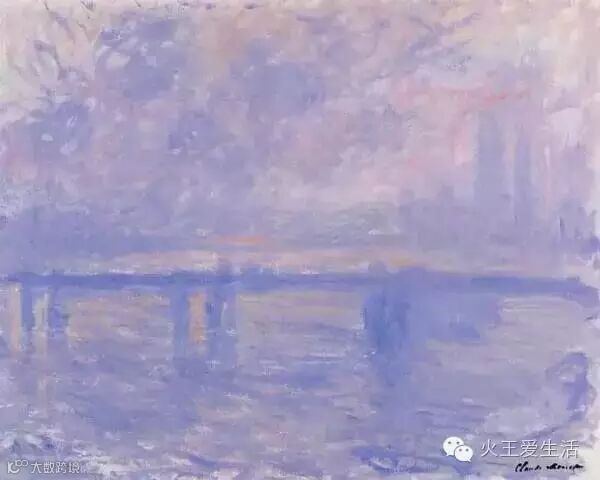 1870年,莫奈曾在伦敦逗留,当时他被这里独特的雾给迷住了。鉴于当时的绘画技法和颜料工艺,想要画好伦敦那种雾蒙蒙的感觉和充满水分的湿润气息,可没那么容易。1889年,莫奈再度造访伦敦,开始创作。不久之后,他完成了《查令十字桥》,而他光是画这座桥,就画了至少65幅。