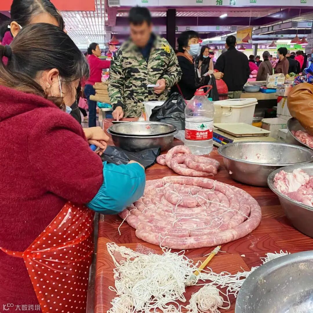 最近天气比较好,趁着好天气大家都在选购猪肉灌香肠、腌腊肉,猪肉摊老板们可谓是忙得不可开交。