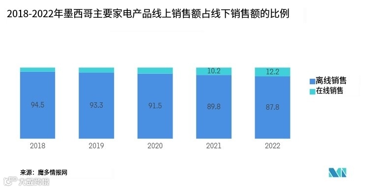 尽管与其他北美和南美国家相比,墨西哥的互联网普及率相对较低,但近年来,大型家用电器的在线销售比例一直在稳步上升。