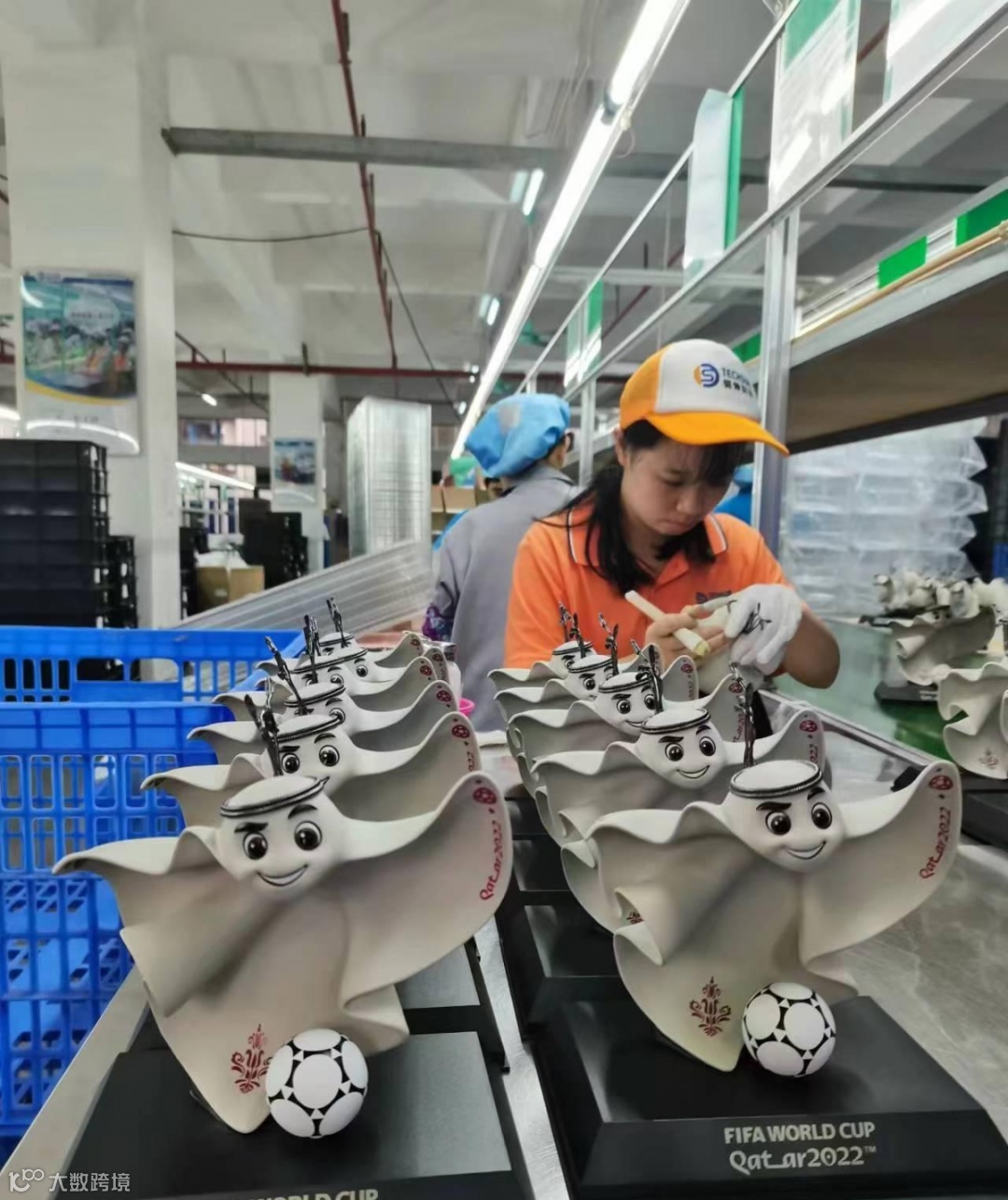 在这场历时28天总共64场比赛的足球盛宴上,据义乌体育用品协会估算,从卡塔尔世界杯32强的旗帜到加油鼓劲的喇叭、哨子,从足球到球衣、围巾,到大力神杯的摆件和抱枕,“义乌制造”几乎占到整个世界杯周边商品市场份额的70%。