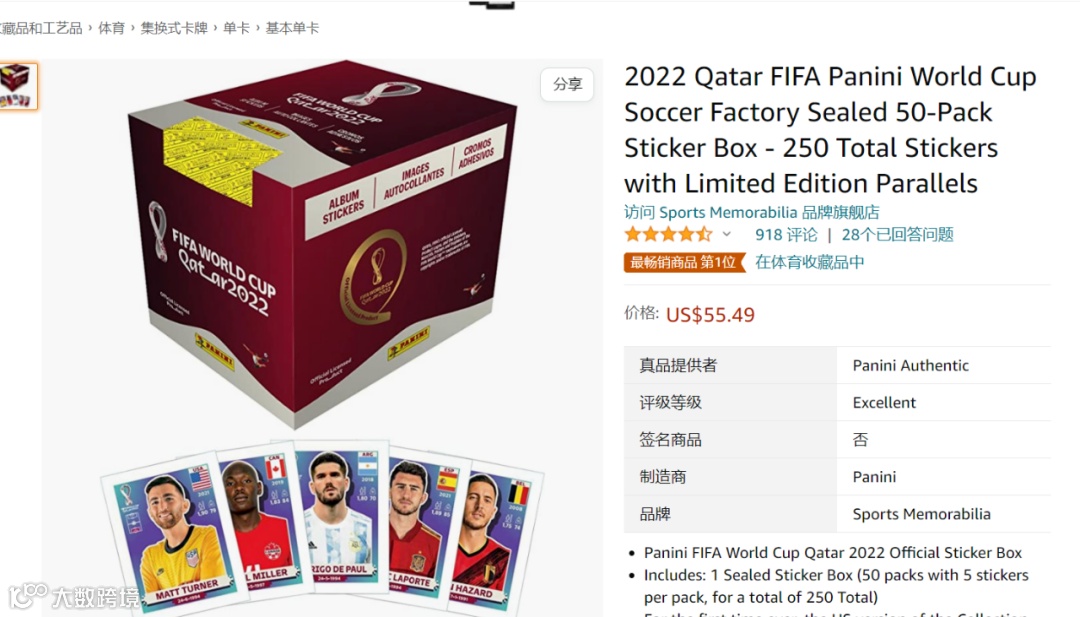 需要注意的是,帕尼尼(Panini)是此次唯一获得卡塔尔世界杯授权的球星卡发行商,只有拿到授权才能进行发售这些球星卡。