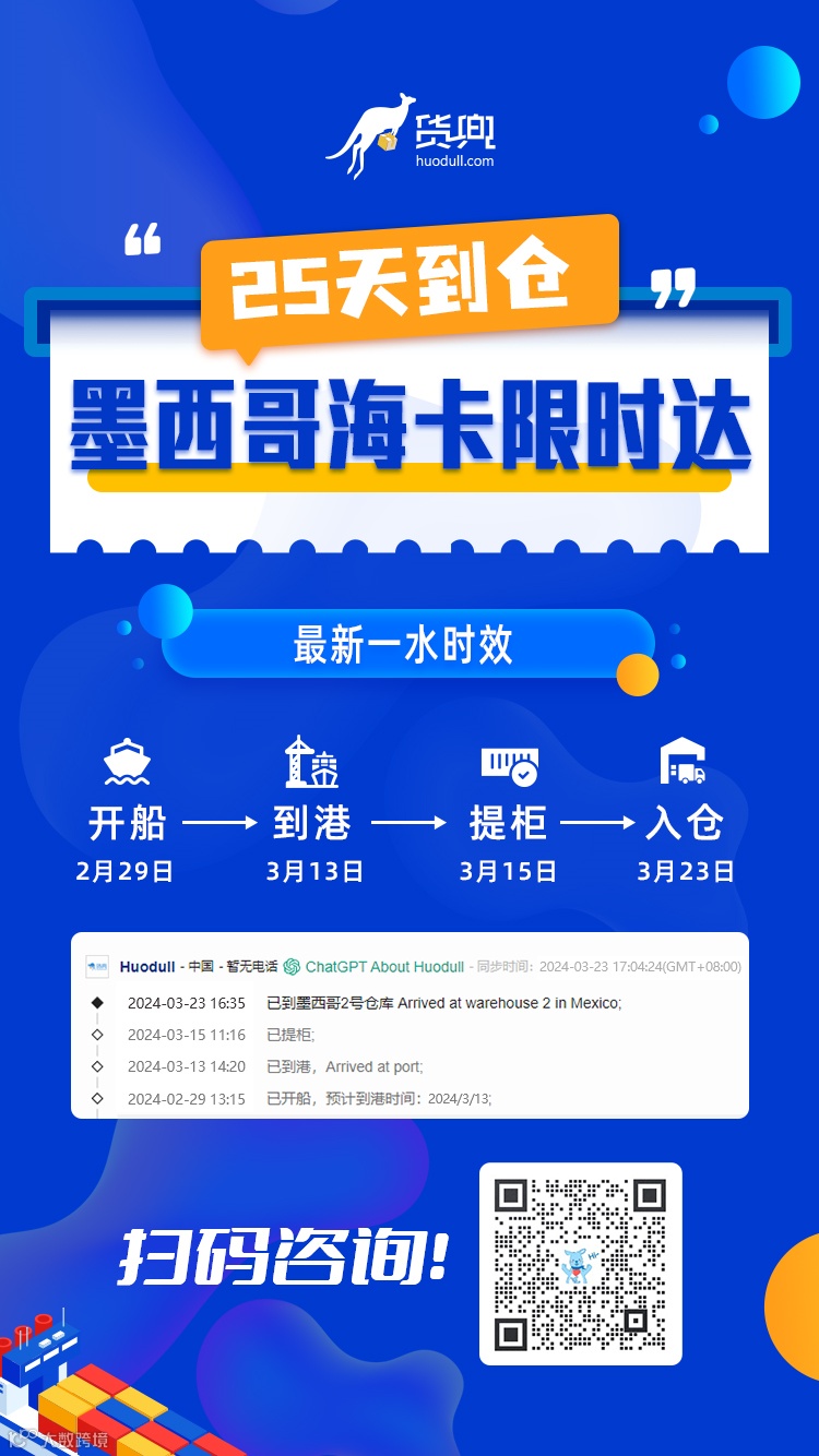 货兜建议大家近期发墨西哥可以尝试我们的墨西哥海卡限时达,时效稳,有保障,出货无忧!