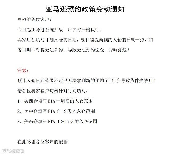 另外,近日一则亚马逊预约“变动”频传,若卖家填写的货件预计送达时间与物流商的预约入仓时间不一致,将导致无法预约送仓。