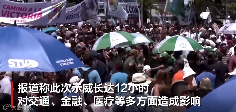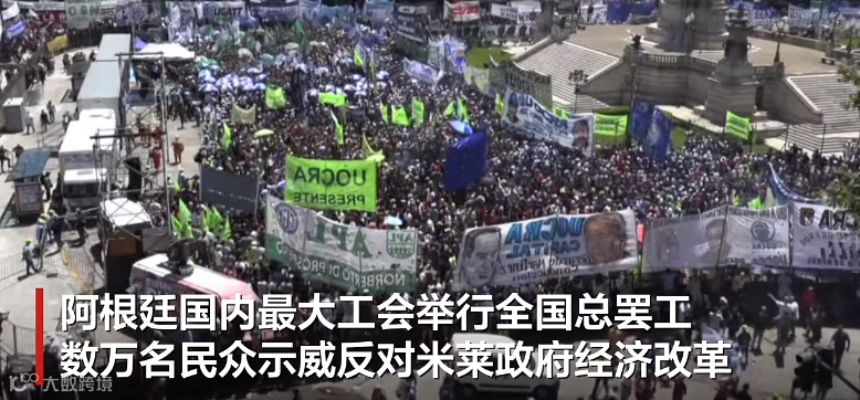 新总统米莱上任仅46天,阿根廷全国罢工12小时,抗议总统米莱的改革措施,抗议的内容主要有米莱推进的:私有化、削减公共开支、改革劳工法等措施。