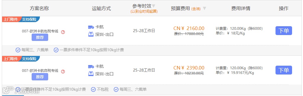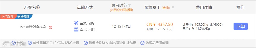 由于货品需要中转,因此时效较慢,货运成本较高,整体时效在7-15天左右。