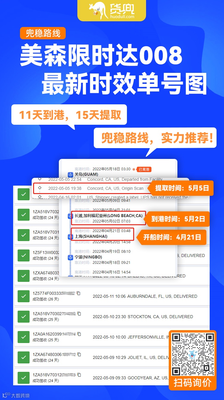 参考时效:从上海出发,11天左右抵达长滩港。