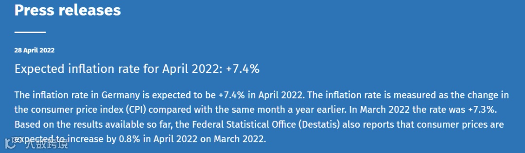 卖家们的成本越来越高,不断挤压着利润空间,尤其是俄乌冲突引发的能源价格上涨后,德国4月通胀率飙升至7.4%,刷新40年来的最高纪录。